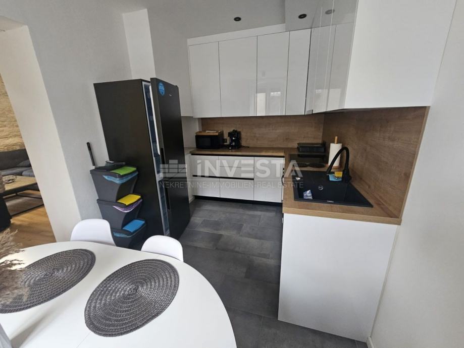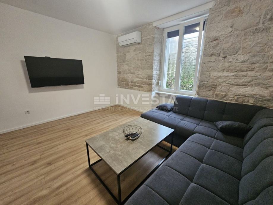 Na prodaji je potpuno adaptiran i novouređen stan u prizemlju austrougarske zgrade, na samo nekoliko minuta hoda od prekrasnih plaža i svih sadržaja koje Pula nudi. Ovaj novouređeni stan površine 71,96m² smješten je u neposrednoj blizini mora. Ima ulaz s ceste i basplatan parkirng uz zgradu. Sastoji se od hodnika, dvije spavaće sobe, kupaonice, dnevnog boravka koji vodi u kuhinju i ostavu. Zidovi su debeli i kameni, što je istaknuto kod preuređenja u dnevnom boravku. Stan je potpuno renoviran i prodaje se u potpunosti namješten s vrhunskom i kvalitetnom opremom. Svaka soba opremljena je klima uređajem, a ima i podno grijanje. U kupaonici, kuhinji i ostavi postavljene su pločice, dok su u spavaćim sobama, dnevnom boravku i hodniku postavljeni laminat debljine 12 mm.