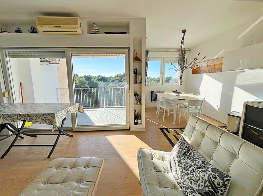 Prodaje se prostran i sunčan stan u starijoj novogradnji s predivnim pogledom na more. Stan se sastoji od dvije velike spavaće sobe, obje s pogledom na more, te kuhinje s blagovaonicom i dnevnim boravkom sa izlazom na veliku terasu koja je idealna za opuštanje i uživanje u vanjskom prostoru, a pruža fantastičan pogled na more. Prostori su osmišljeni kako bi omogućili udoban boravak i uživanje u prirodnom svjetlu.
