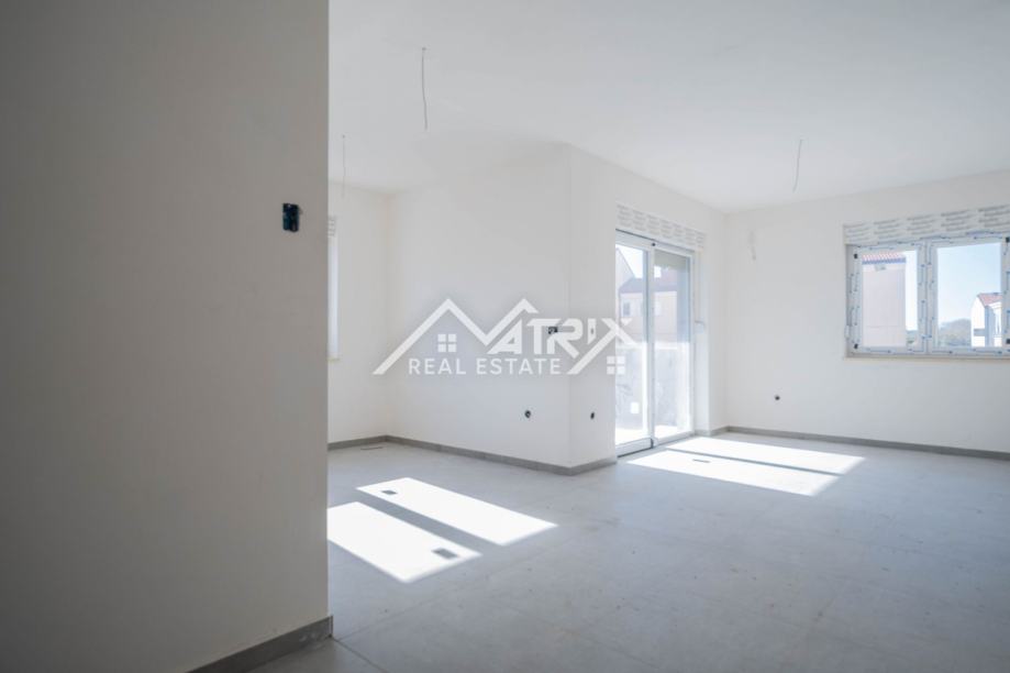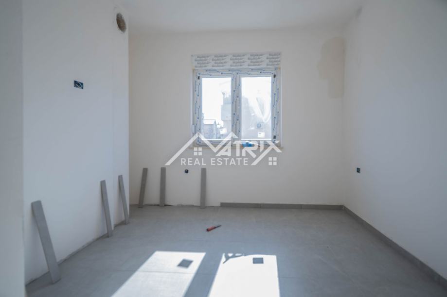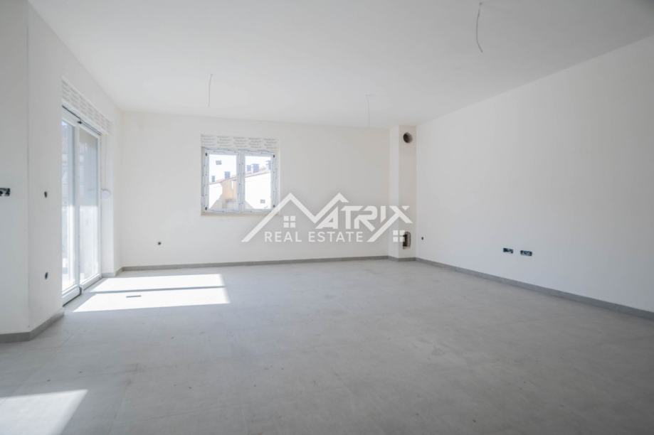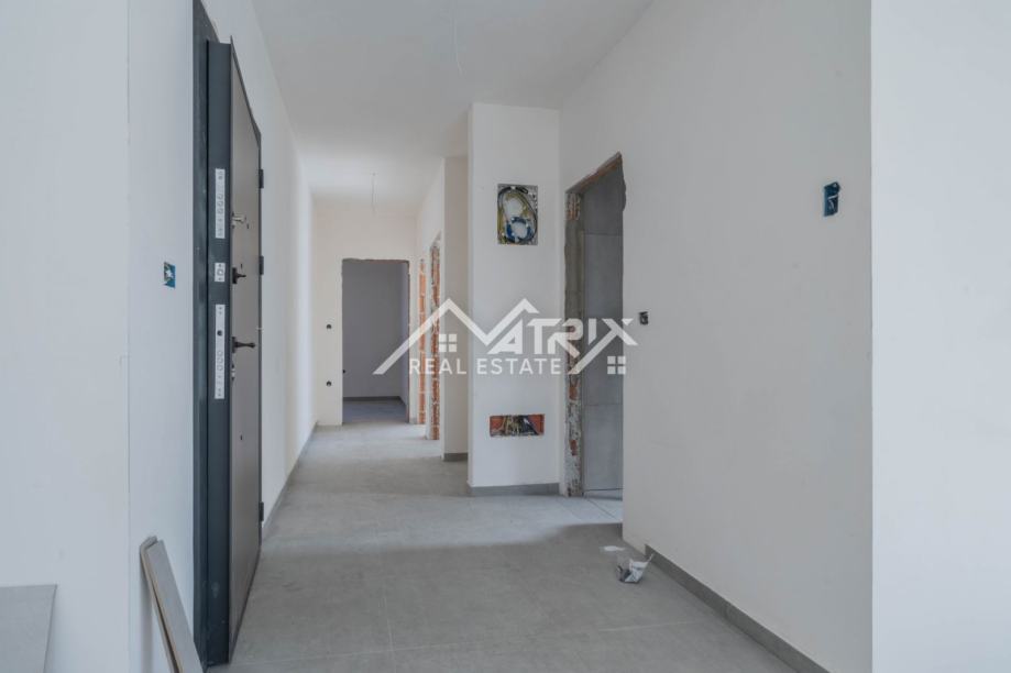 U mirnom dijelu Pule, na Veldebeku, u kvalitetnoj novogradnji prodaje se trosobni stan površine 90 m2, smješten na 1. katu manje stambene zgrade koja ukupno ima 2 kata. Raspored je osmišljen vrlo praktično: ulazni hodnik vodi prema open space dnevnom boravku, blagovaonici i kuhinji, iz kojih se izlazi na balkon, idealan za opuštanje i boravak na zraku. Stan raspolaže s tri spavaće sobe, a iz jedne je omogućen izlaz na dodatni balkon, što prostoru daje više svjetla i osjećaj privatnosti. Kupaonica dolazi kompletno opremljena sanitarijama, a za dodatnu ugodu predviđen je i radijator. Za grijanje stana predviđen je dimnjak (što omogućuje fleksibilnost u odabiru sustava grijanja), dok klima uređaj osigurava ugodnu temperaturu tijekom cijele godine. Ugrađena je kvalitetna PVC stolarija i moderna keramika, uz naglasak na trajnost i uredan završni dojam. Stan je osunčan i ugodan, a planirana useljivost je prije ljeta, što ga čini odličnim izborom za obiteljski život ili kao investiciju za najam. Uz stan dolaze i dva garažna mjesta, što je velika prednost u svakodnevnom funkcioniranju. Lokacija na Veldebeku nudi blizinu svih važnih sadržaja i dobru povezanost s ostatkom grada, pa je ova nekretnina idealna za one koji traže mir, a žele imati sve nadohvat ruke.