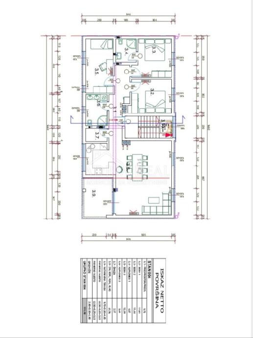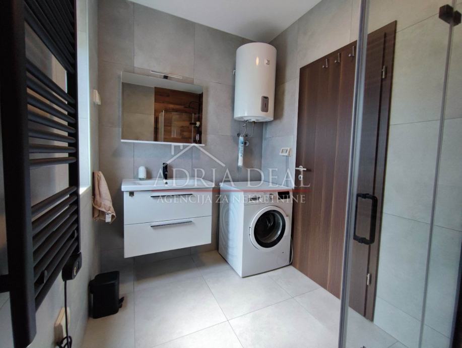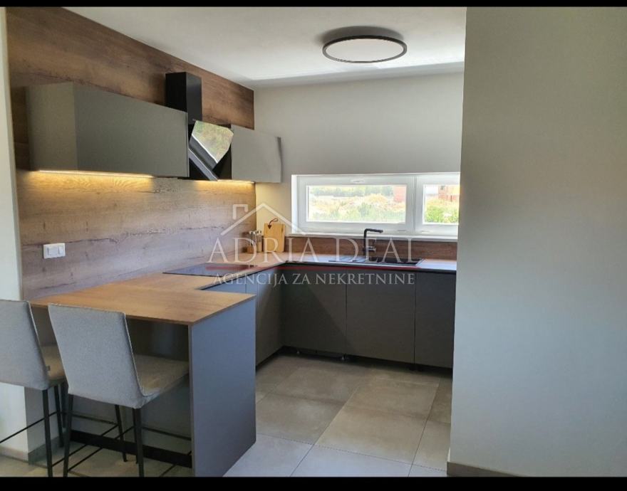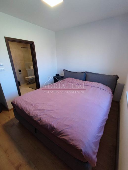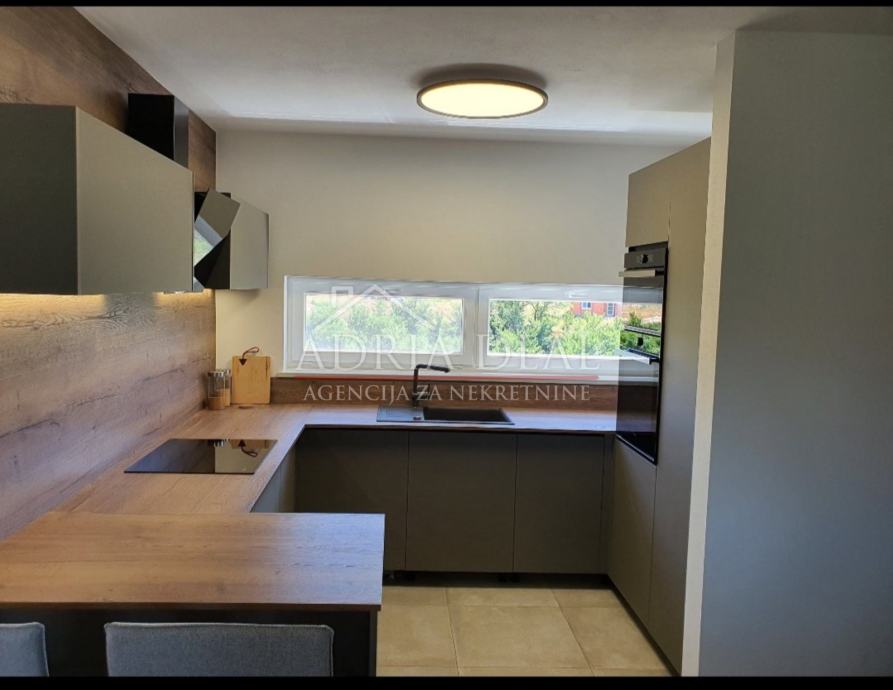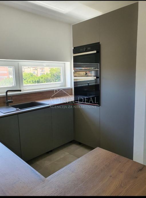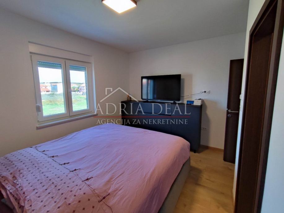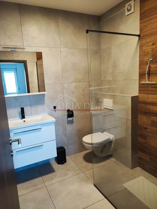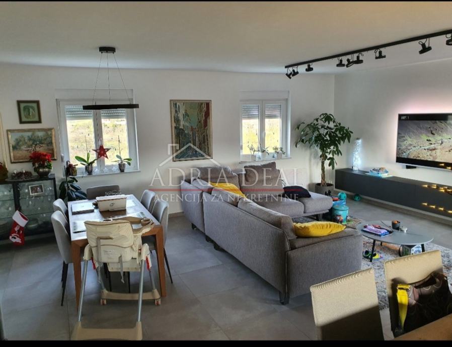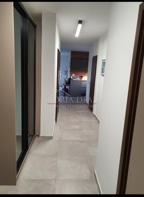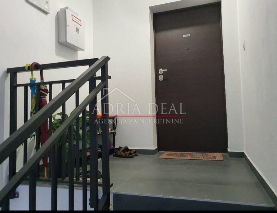 Moderno opremljen stan na drugom katu stambene zgrade u novogradnji, ukupne površine 108,44m2 sastoji se od predprostota+predsoblja, tri spavaće sobe, ostava, dnevnog boravaka, kuhinje, blagovaonice, dvije kupaonice, natkrivene terase, spremište te dva parkirna mjesta ispred zgrade.