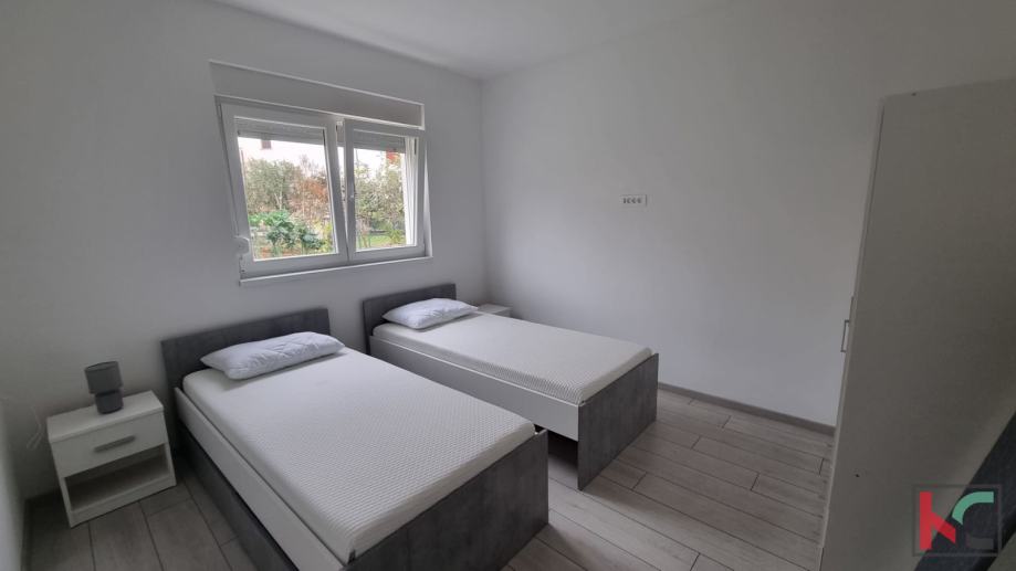 Stanu u vlasništvu pripada i garaža te parkirno mjesto ispred iste. Opremljena kvalitetnom keramikom, Demit fasada sa PVC stolarijom pruža dobru izolaciju same nekretnine, što omogućuje optimalne troškove grijanja, odnosno hlađenja, koje se odvija putem klimatske jedinice.