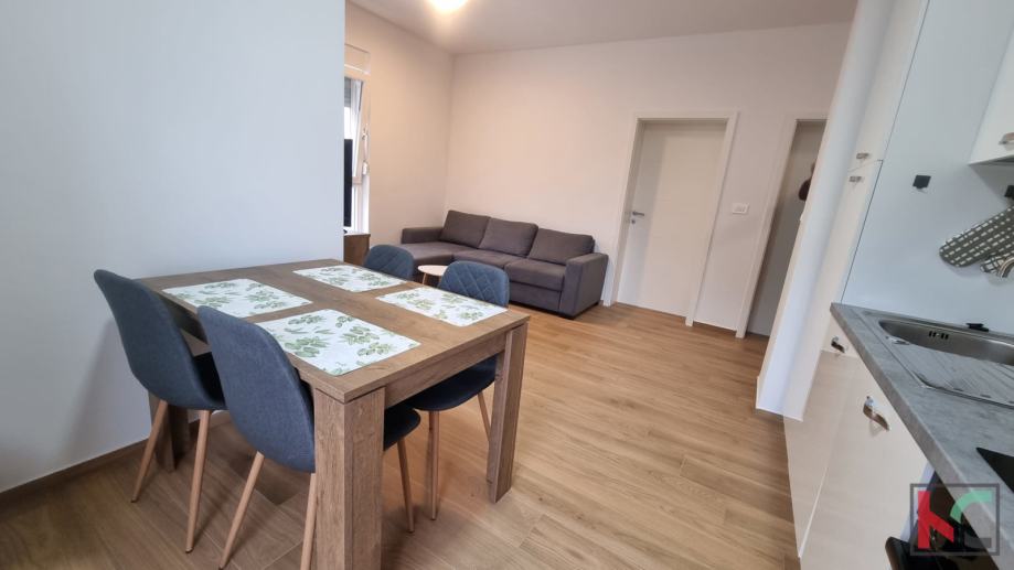 Ovaj stan od 57m2 stambene površine sastoji se od hodnika, dvije spavaće sobe, kupaonice, te dnevnog boravka sa kuhinjom i blagovaonicom čine jedan predivni open space prostor sa izlazom na terasu.