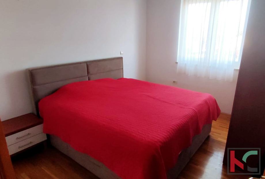Stan se sastoji od dvije spavaće sobe, dnevnog boravka, kuhinje opremljene aparatima, te posjeduje balkon s kojeg se pruža pogled na mirnu okolinu. Dodatnu vrijednost donosi podrum, kao i osigurano parkirno mjesto. Grijanje je na struju, a stan je opremljen klimom za maksimalnu udobnost.