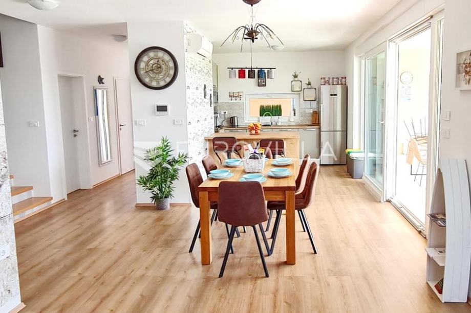 Na prodaji je vrhunsko i moderno uređena samostojeća kuća na mirnom i intimnom mjestu na Valdebeku, udaljena svega nedaleko kilometara od centra grada i obližnjih plaža. Kuća je 198,16 m2 a netto unutarnje korisne površine 155,26 m2 plus donja natkrivena terasa (41,64 m2) i lođa na katu...