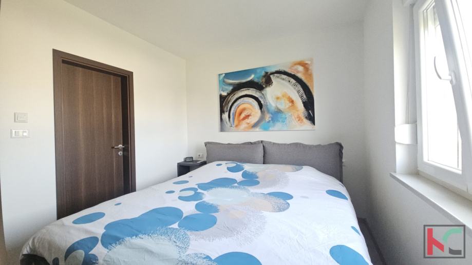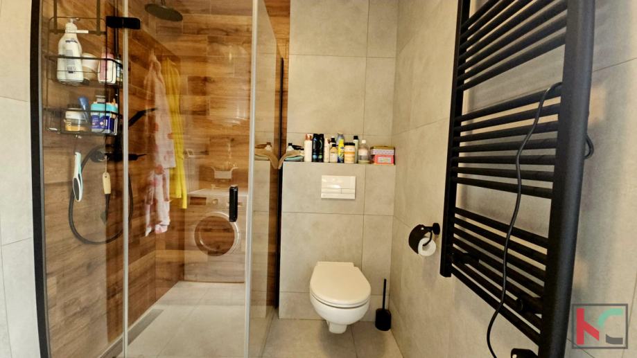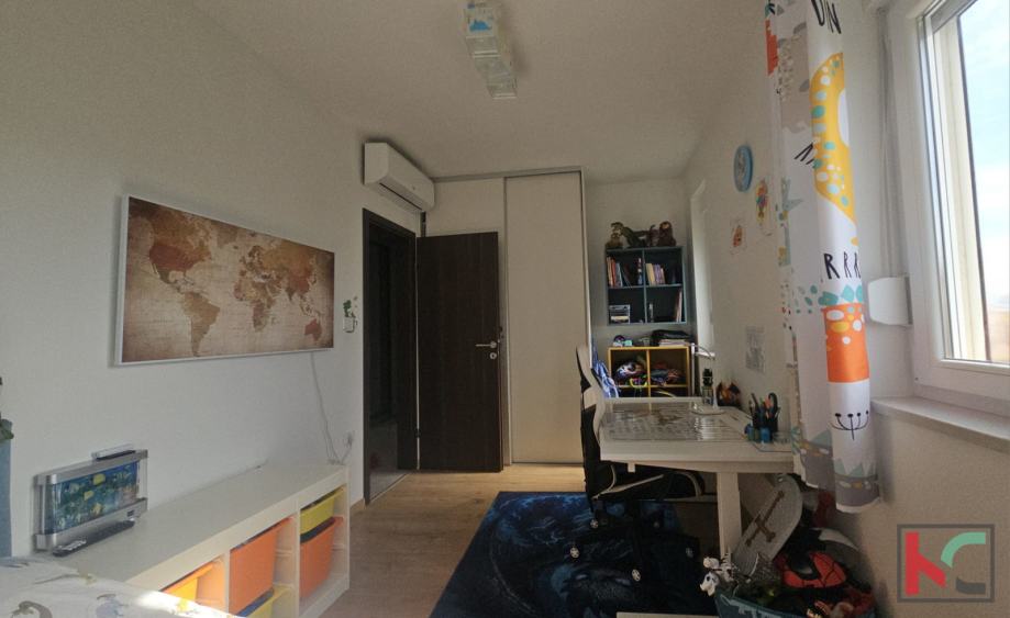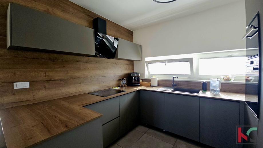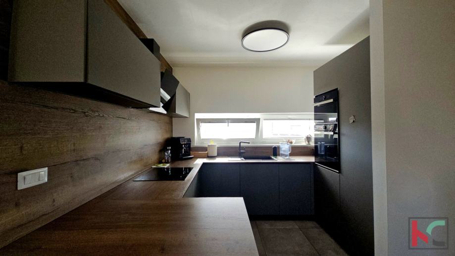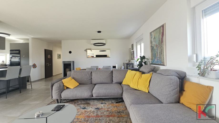 Oprema i karakteristike: protuprovalna vrata, PVC stolarija, kvalitetna unutarnja stolarija, moderna i potpuno opremljena kuhinja, suvremeno uređen interijer, 4 klimatske jedinice (grijanje i hlađenje)i provedeno podno grijanje (trenutno nije u funkciji).