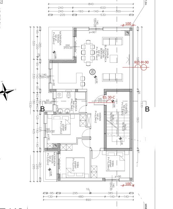 Pula, Valdebek, apartment under construction on the first floor of a small building (building with 4 apartments) with a total area of 93 m2. The property consists of a hallway of 9.04 m3, a bathroom, three bedrooms of 11.20 m2, 10.51 m2 and 10.39 m2, a living room with a dining room and a kitchen...