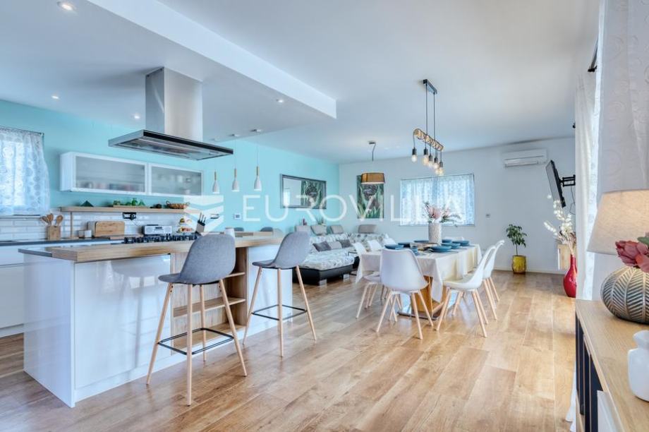 Na mirnoj lokaciji, okruženoj zelenilom, izdajemo ovu prekrasnu, osunčanu i funkcionalnu samostojeću katnicu s bazenom. Površine 225 m2, smještene na 1046 m2 zemljišta. U prizemlju su se smjestili ulazni hodnik, spavaća soba s vlastitom kupaonicom, open space dnevni boravak te kuhinja i...