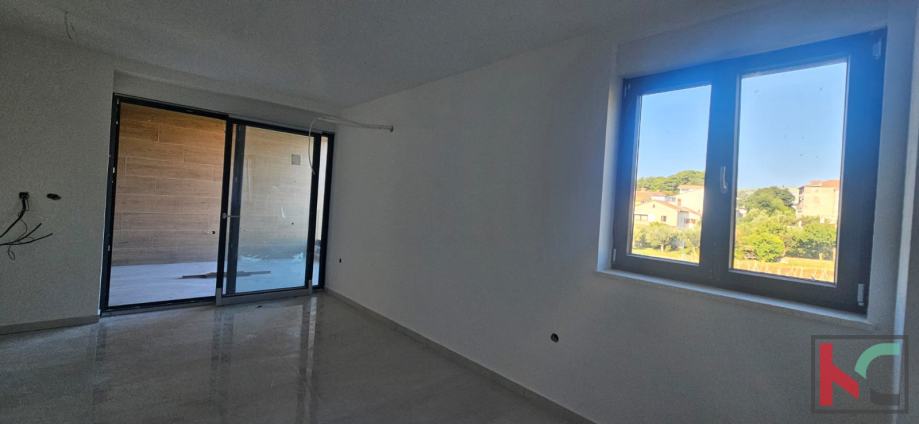 Predmetni stan se nalazi na prvom katu i ima 55m2 te se sastoji od velike natkrivene lođe, 1 spavaće sobe, open space prostora kuhinje i dnevnog boravka i kupaone.Stan je opremljen podnim grijanjem, inverter klima uređajem za grijanje i hlađenje, PVC troslojnom stolarijom u antracit boje te demit fasadom od 10cm.