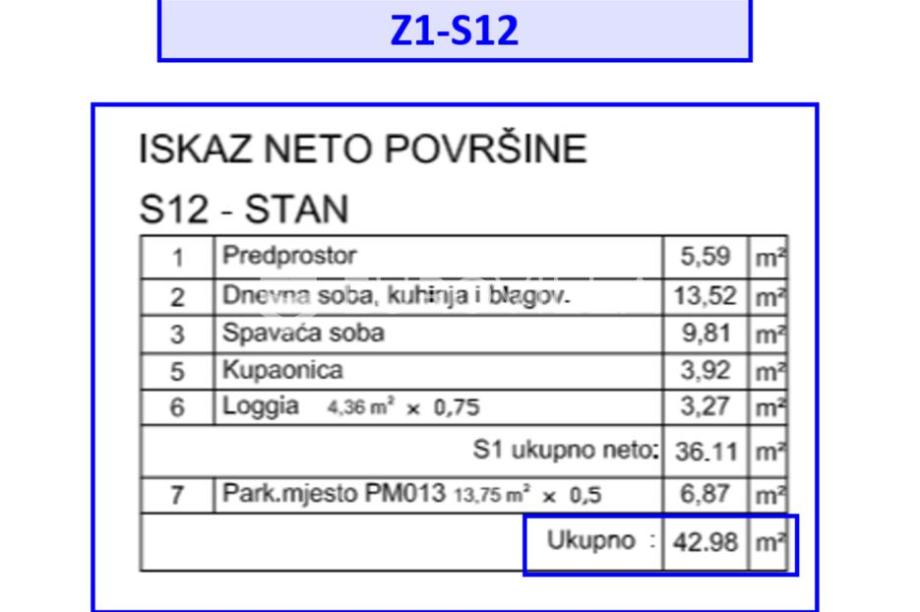 Pula, Veli Vrh - projekt od 14 zgrada u izgradnji sa sveukupno 119 stanova, 10 poslovnih prostora i dječjim vrtićem. Stan S12 nalazi se u zgradi br.1 orijentiran je istočno i sastoji se od: ulaznog pretprostora, dnevnog boravka s kuhinjom i blagovaonicom, jedne spavaće sobe, kupaonice i loggie...