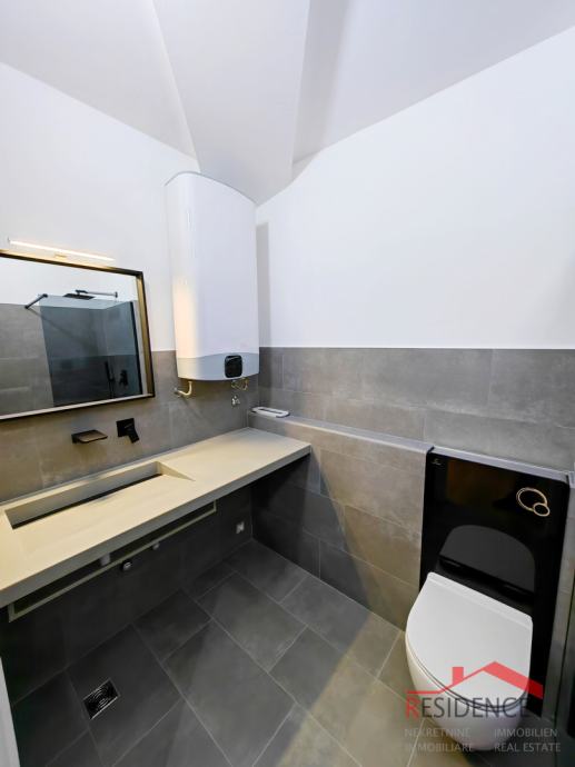 Sastoji se od dnevnog boravka s kuhinjom, galerijom, blagovaonicom i lođom, kupatilo, hodnik, spavaća soba s kupatilom i spavaća soba s lođom. Grijanje i hlađenje klima uređajem. Orijentacija stana Sjeveroistok.