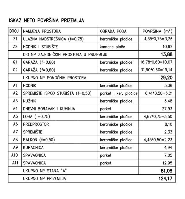 U ponudi je stan od 81.08m2. Sastoji se od dvije spavaće sobe, dvije kupaonice, dnevnog boravka s kuhinjom i blagovaonicom, prostorije za odlaganje i praonicu, lođije i balkona. Stanu pripada vrt cca 50m2, spremište ispod stepenica i 2 parkirna mjesta. Planirani završetak gradnje je jesen 2025. godine. Zgrada ima ukupno 3 etaže , prizemlje 1, i 2 kat sa ukupno 4 stana od kojih ovaj stan oznake A zauzima cijelo prizemlje. Stan će imati strujno podno grijanje u dnevnom boravku i kupaonicama.