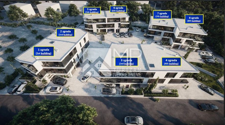 U ponudi imamo novi projekt na atraktivnoj lokaciji na Velom Vrhu (dio Vallelunga) na udaljenosti od 300m od mora, a u blizini svih relevantnih sadržaja za život. Riječ je o 8 višestambenih zgrada sa ukupno 32 stana, po četiri stana u svakoj zgradi.