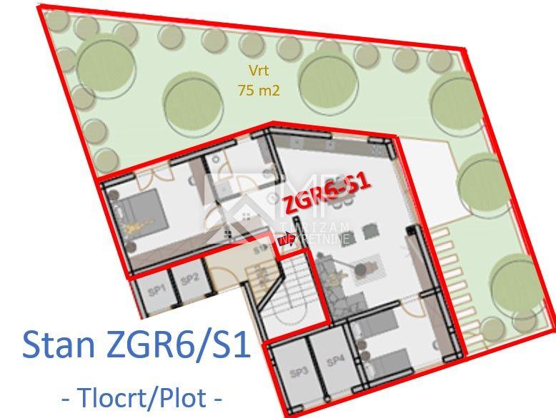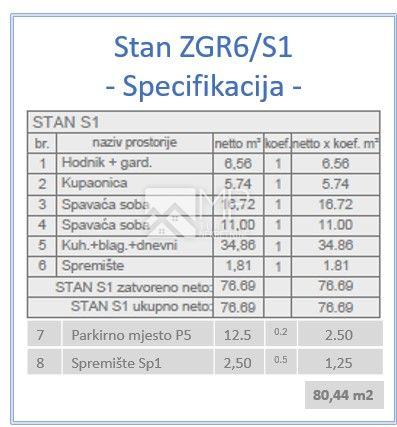 Na prodaju je stan u zgradi broj 6/oznake S1 u prizemlju, sveukupne površine 80,44 m2 raspoređenih na sljedeći način: