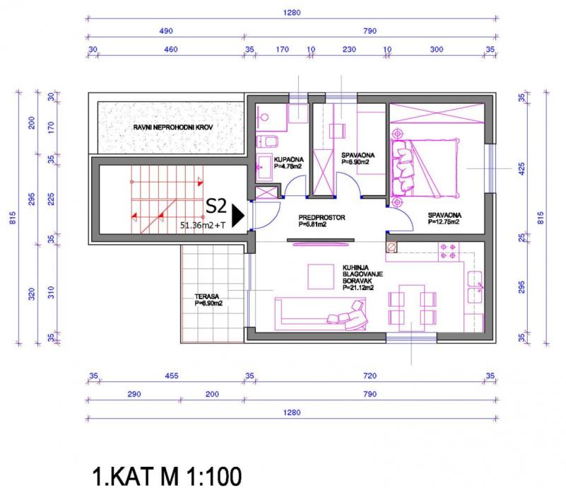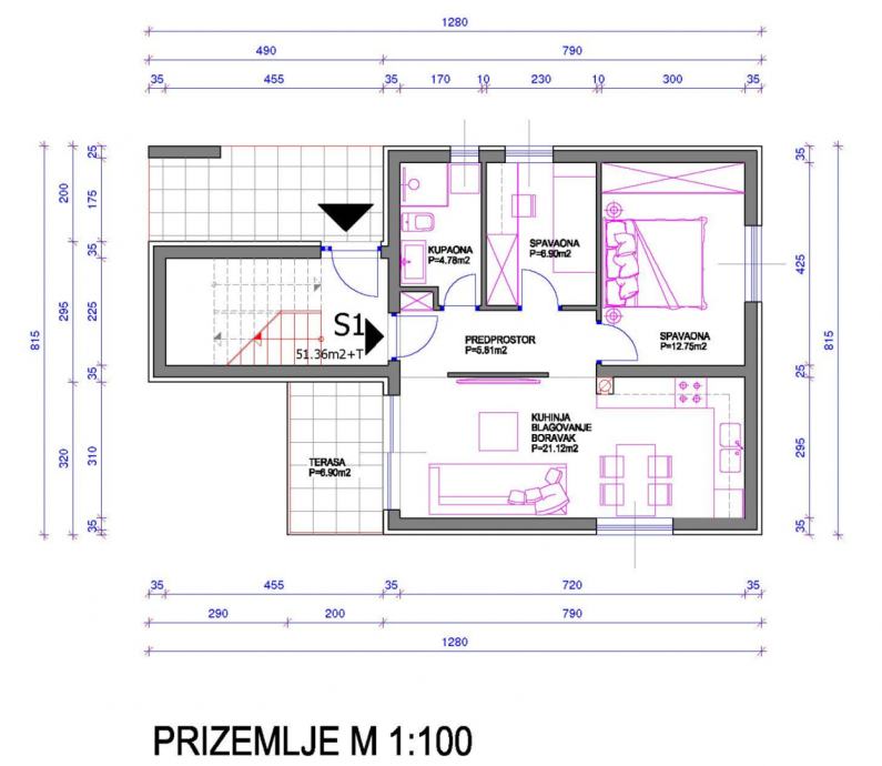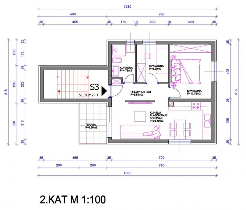 Stanovi neto površine 54,81 m2 + 2,5 m2 parking mjesto