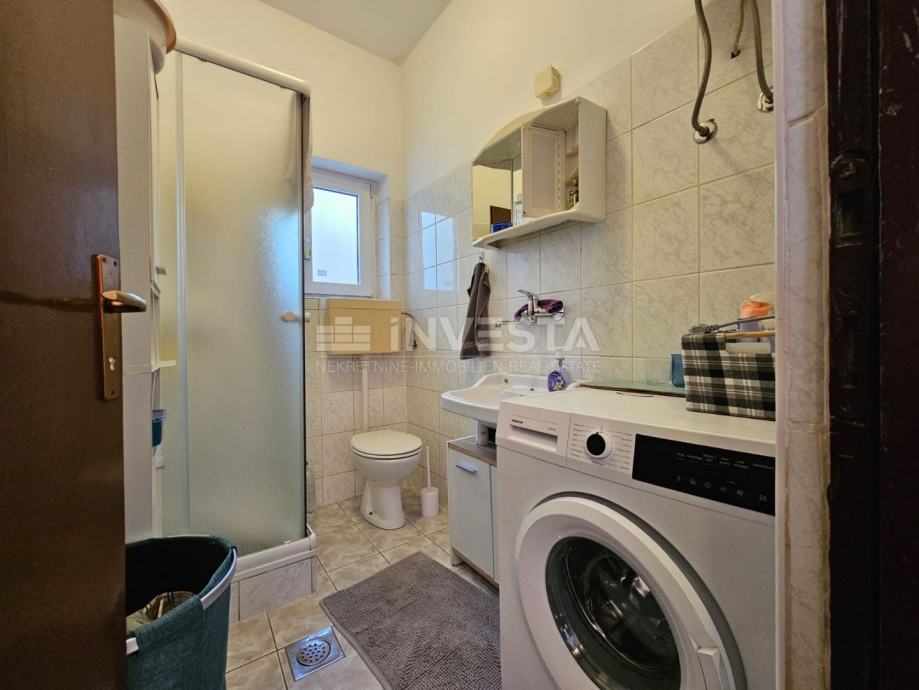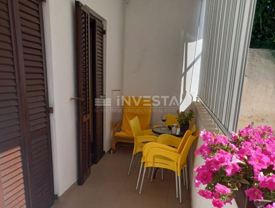 Stan se nalazi u stambenoj zgradi izgrađenoj 1988. godine, a zahvaljujući redovitom održavanju i nedavnim poboljšanjima, nalazi se u vrlo dobrom stanju i odmah je useljiv. Unutrašnji raspored prostora osmišljen je tako da osigura udobnost i funkcionalnost: ulazni hodnik vodi prema kuhinji s blagovaonicom, kupaonici i dvjema spavaćim sobama, od kojih jedna je namještena kao dnevni boravak. Posebnu vrijednost stanu daje velika terasa, kojoj se pristupa iz dnevnog dijela i spavaćih soba, a koja pruža dodatan prostor za opuštanje i boravak na otvorenom. Stan je tijekom dana ispunjen prirodnim svjetlom, što stvara ugodnu i toplu atmosferu.