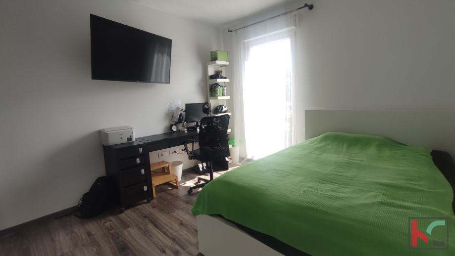 Stan je kompletno uređen i spreman za useljenje, a namještaj ostaje po dogovoru. Postavljena je PVC stolarija. Grijanje je na klimatsku jedinicu i plinsku peć.