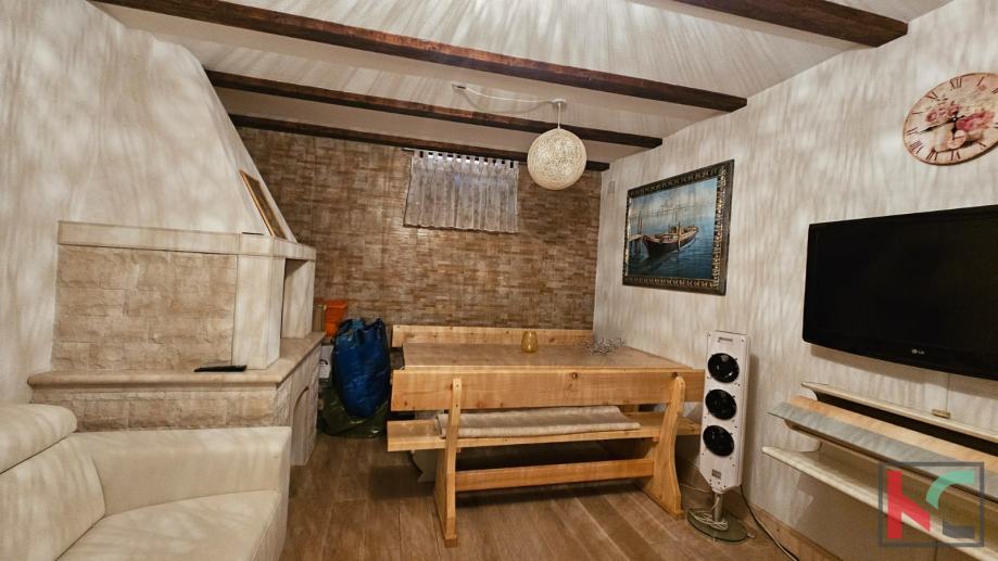 U podrumu se smjestila konoba sa kaminom i kuhinjom za druženja, ostava i prostor za pohranu stvari. Ulaz u podrum moguće je kroz kuću ili izvana.