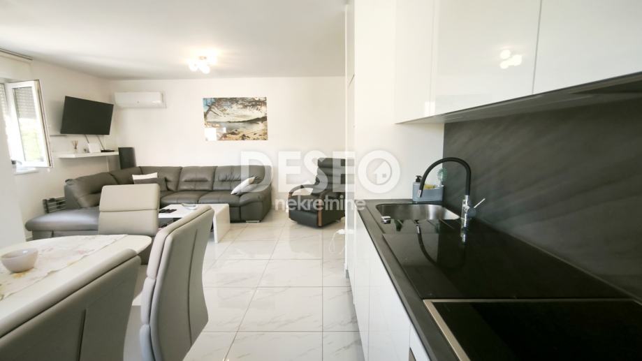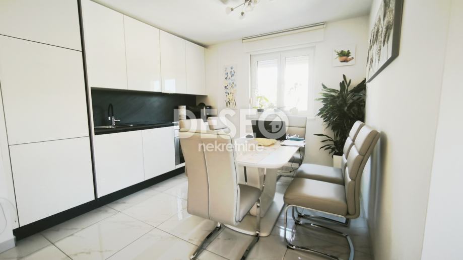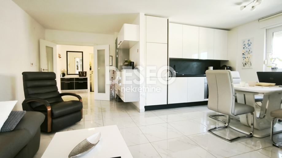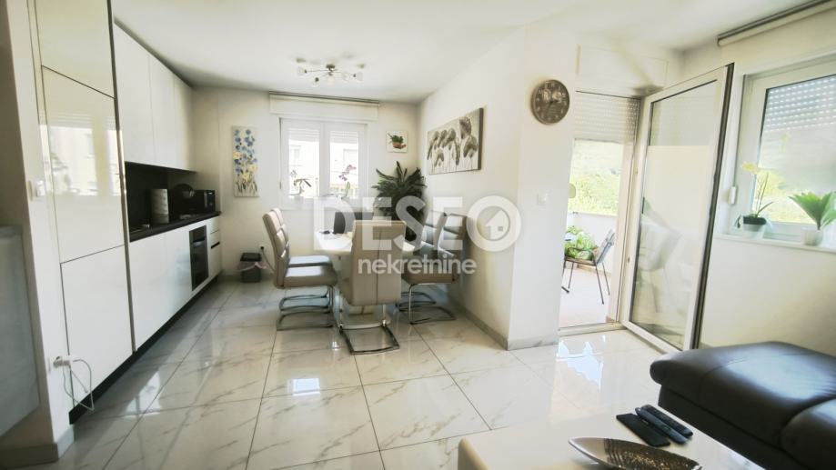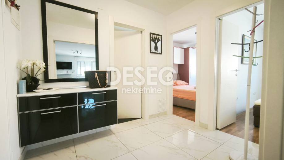 Stan se sastoji od predosblja, dvije spavaće sobe, kuhinje s blagovaonicom, dnevnog boravka, kupaonice te lođe s pogledom na zelenilo koja dodatno obogaćuje prostor. Stan je klimatiziran te ima podno grijanje i u potpunosti je namješten, spreman za useljenje bez dodatnih ulaganja.