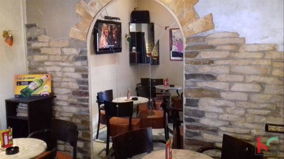 Pula, Veruda, poslovni prostor u stambenoj zgradi ukupne kvadrature 42m2 sa 15m2 terase u najmu od grada Pule. U poslovnom prostoru trenutno vrlo dobro egzistira uhodani cafe bar. Kompletan poslovni prostor je opremljen i kao takav se i prodaje.