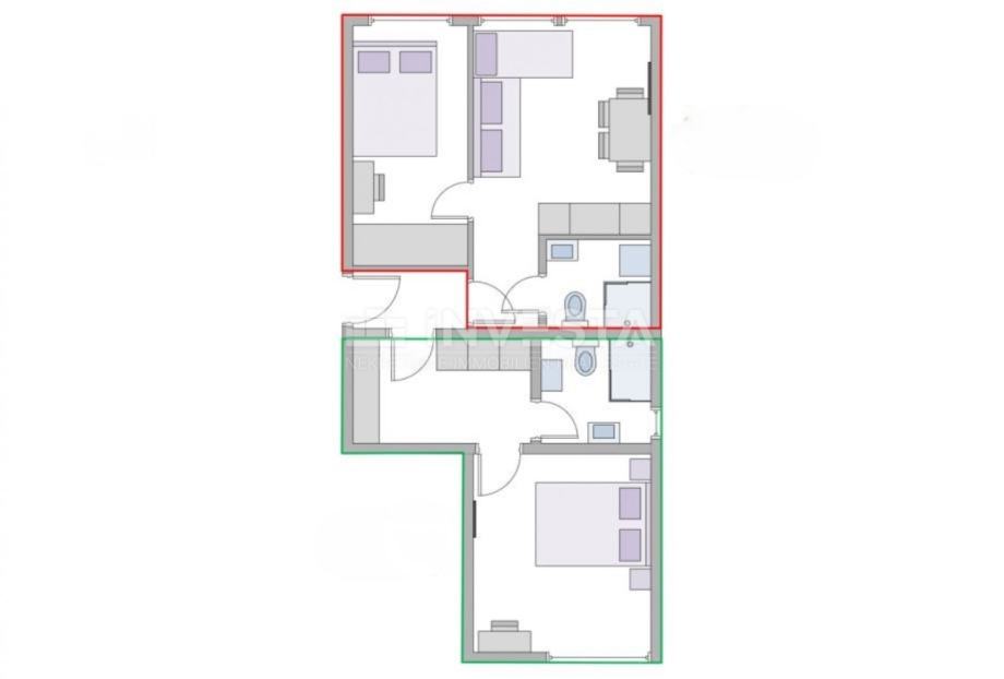 Stan je površine od 61 m² sastoji se od dvije jednake stambene jedinice svaka sa svojim zasebnim ulazom. Stan se nalazi na 6. katu stambene zgrade s ukupno 8 katova. Zgrada je izgrađena 1970. godine., te su stanovi temeljito renovirani i opremljeni 2019 god. Stanovi su opremljeni klimatskim jedinicama za grijanje i hlađenje. Stanu pripada i dio zajedničkih podrumskih prostorija, što nije uključeno u navedenu kvadraturu stana. U blizini stana dostupan je dovoljan broj besplatnih javnih parkirnih mjesta, te u svako doba dana imate dostupan parking. U blizini stana nalaze se svi potrebni sadržaji (trgovine, tržnica, ljekarna, dom zdravlja, restorani, kafići, teretana, gradski bazen), a plaže i Lungo Mare su na samo 900 m udaljenosti.