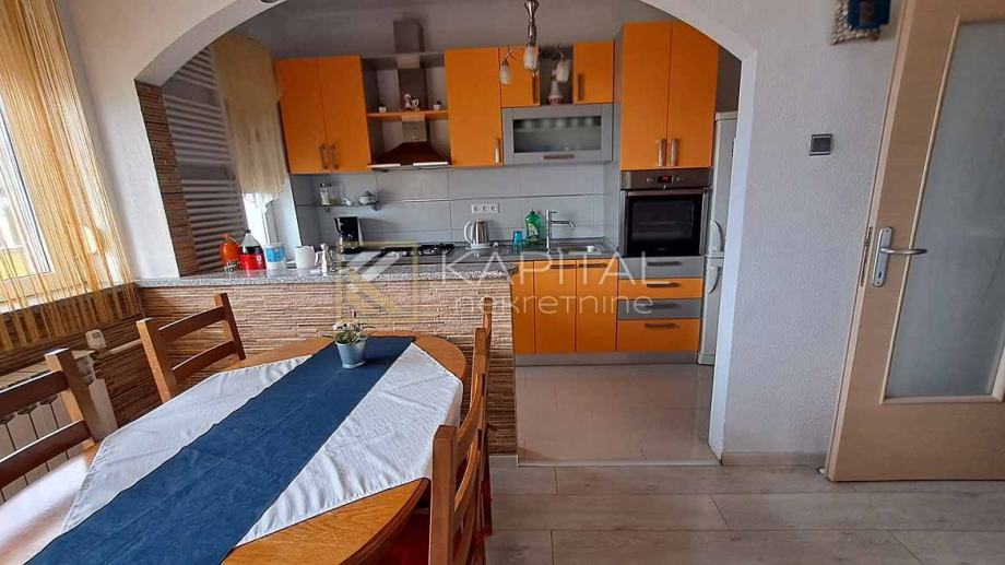 Samostojeća kuća s uređenom okućnicom i otvorenim pogledom na more. Uz cestu se nalaze 3 garaže pored kojih se dolazi stepenicama do prizemlja kuće. U prizemlju se nalaze 2 velike konobe cca 30 m2. Na prvom katu se nalaze 2 stana. Jedan 1s+db (cca 40 m2) i drugi 3s+db (cca 90 m2) s balkonom i kategorizacijom (3 *). Na zapadnoj strani kuće nalazi se ljetna kuhinja i vanjske stepenice za tavan. Tavan je cca 100 m2, roh-bau s balkonom.S obzirom da tavan ima dovoljnu visinu , bez problema se dobije još jedan stan s obzirom da se do njega dođe vanjskim stepenicama. Za sve informacije nazovite 099/219-6354