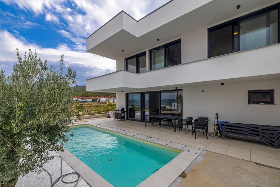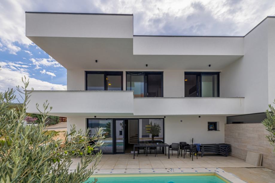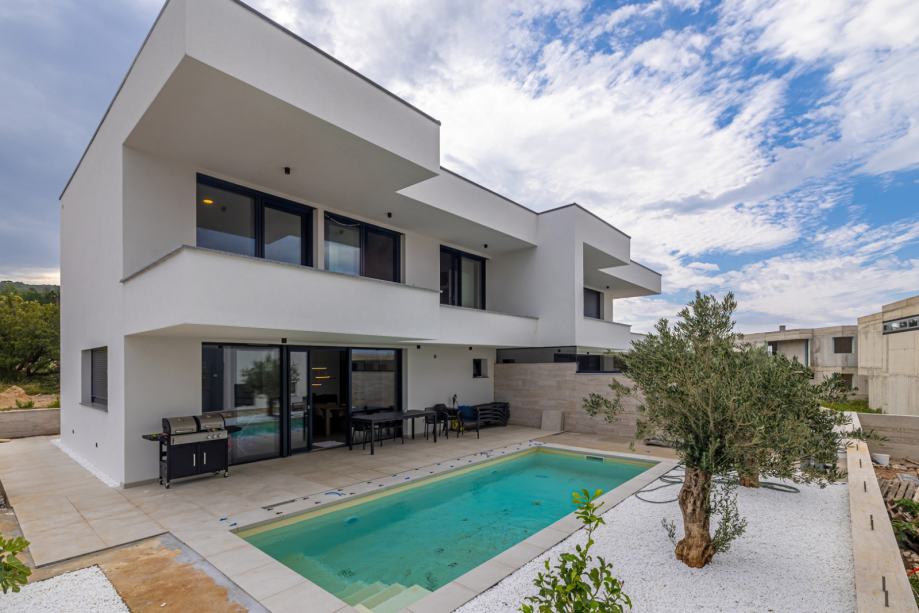 Prodaje se novoizgrađena dvojna kuća s bazenom i pogledom na more u mjestu Punat na otoku Krku.