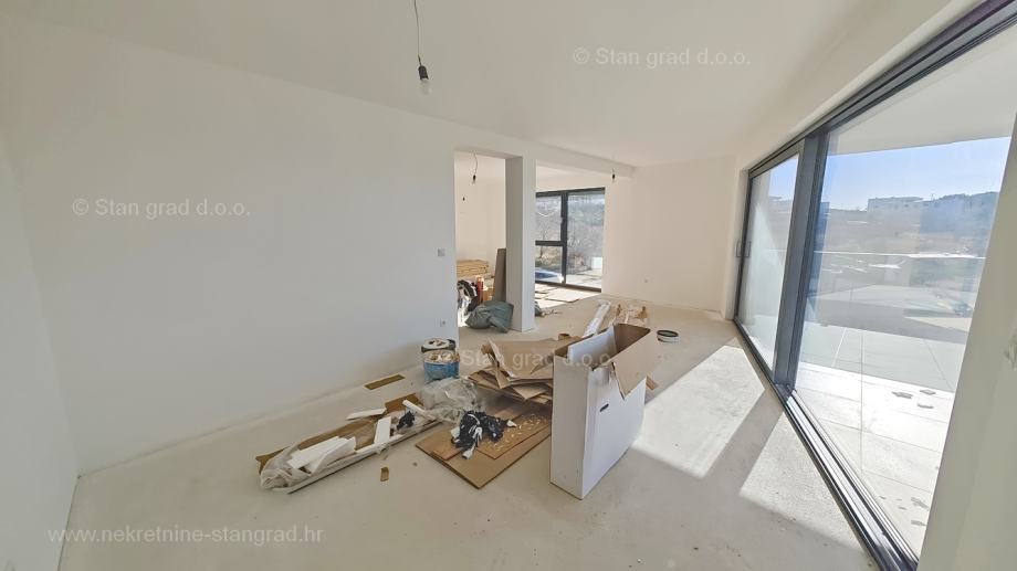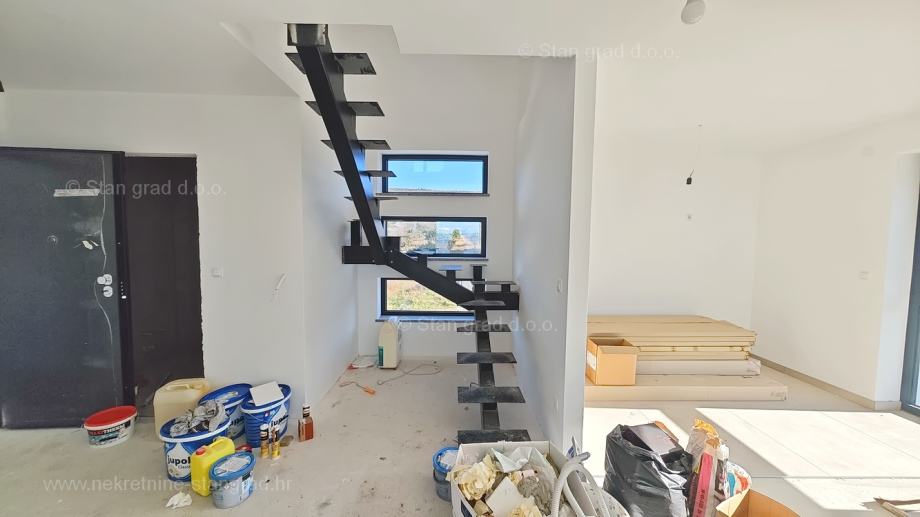 Kod agencije Stan Grad Immobilien je u prodaji izniman apartman građen po modernom projektu na atraktivnom sjevernojadranskom području otok Krk. Ponuđeni apartman je na urbanoj i uređenoj lokaciji, blizu mora, centra i svih potrebnih sadržaja u mjestu Punat. Po vrsti nekretnine, to je dvoetažni apartman s unutarnjim stepenicama i ulaznim prostorom na nižoj etaži. U suvremeno građenom objektu, apartman se prostire preko 1. i 2. etaže. Površina ovog apartmana iznosi ukupno 113 m2. Ta površina obuhvaća dnevni boravak i kuhinju s blagovaonicom, wc i terasu na prvom katu, a na drugom katu su smještene 2 spavaće sobe, kupaonica, master soba s vlastitom kupaonicom i prostrana terasa u potkrovlju. Vlasnik apartmana može neometano koristiti sve pripadajuće zajedničke dijelove i prostore nekretnine. U vlasništvu ovog apartmana je uređen parkirni prostor za parkiranje dva automobila. Uz ranije značajke, objekt je odlično orijentiran, tako da se iz apartmana nudi krasan pogled na more i priobalje. Ovaj je apartman vlasništvo fizičke osobe pa je kupac prilikom prijepisa njegovog vlasništva na svoje ime u obvezi plaćanja poreza na promet u visini 3%. Prodavatelj nekretnine garantira brz prijenos vlasničkih prava te urednu vlasničku i tehničku dokumentaciju. Srdačno ste dobrodošli na naš zlatni otok Krk i u našu kvarnersku poslovnicu. Ukažete li nam povjerenje, Stan Grad Immobilien će vam rado pomoći u pravnim postupcima prijenosa vlasništva nekretnine i računa za komunalne priključke na svoje ime.