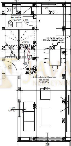 * Prizemlje: dnevni boravak, kuhinja s blagovaonicom, kupaonica,terasa