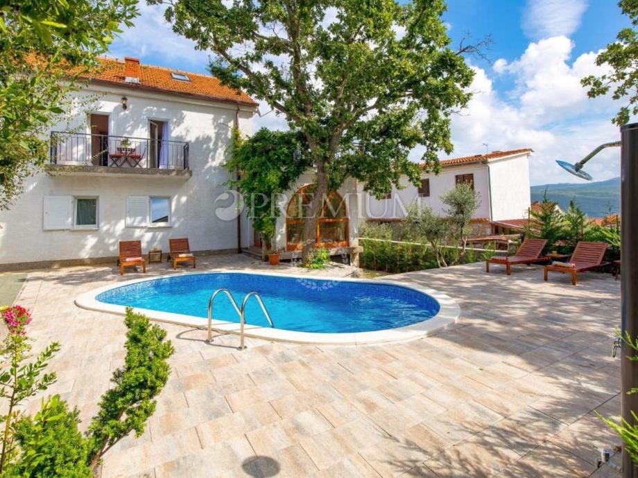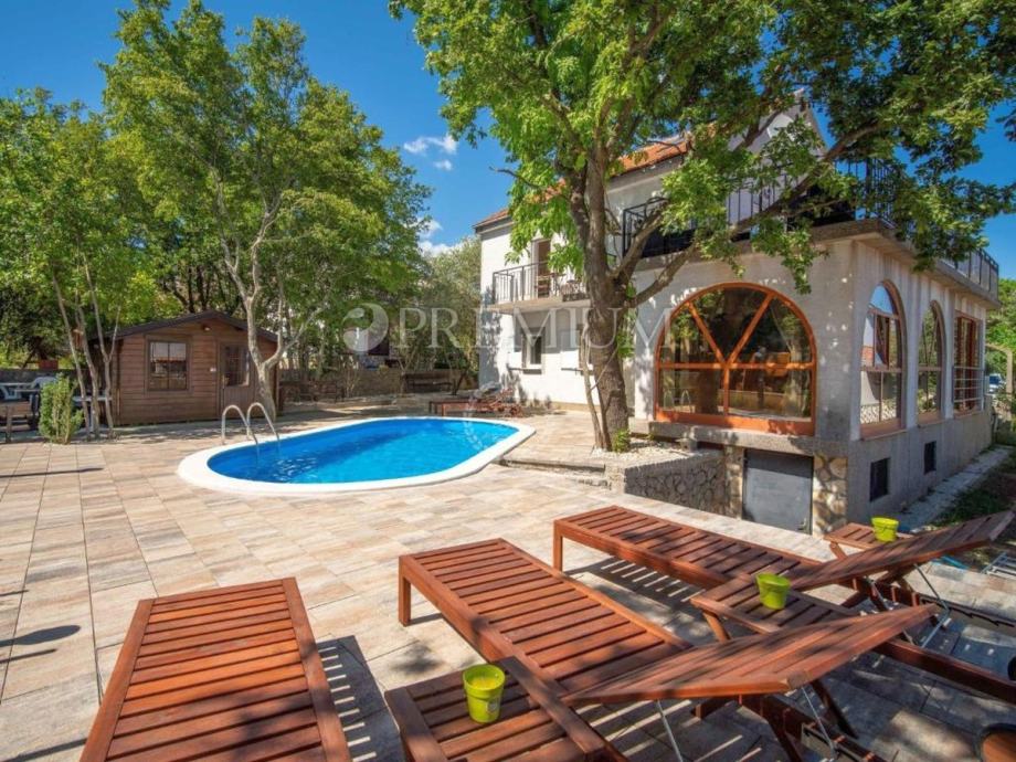 Punat, okolica, prodaja samostojeće kuće, s bazenom, velikom okućnicom, garažom, i djelomičnim pogledom na more!