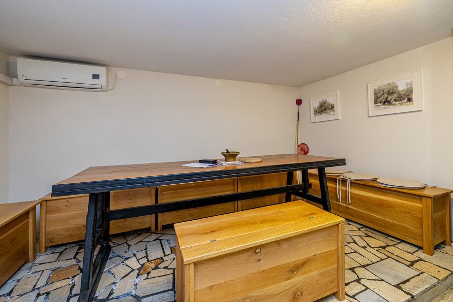 Nekretnina je odmah useljiva i funkcionalna, a budući vlasnik može je dodatno personalizirati prema vlastitom ukusu. Prodaje se u potpunosti namještena, klimatizirana je, a kombinacija PVC i drvene stolarije doprinosi autentičnom ugođaju.