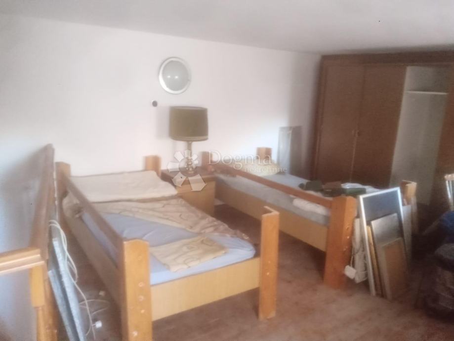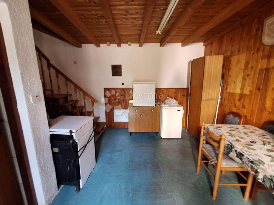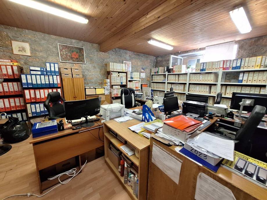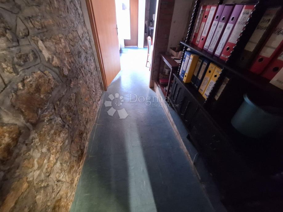 Raspoređen je na dvije etaže i smješten u starogradskoj jezgri. U prizemlju se nalazi kuhinja, dnevni boravak, kupaona, wc-a, uredski prostor koji je u najmu (budući kupac može nastaviti suradnju, najam od uredskog prostora je 500 Eura mjesečno), te trenutno zagrađene gušterne gdje je moguće dobiti prostor veličine 20m2. Na katu se nalaze 2 spavaće sobe. Stan je udaljen svega 150 metara od centra mjesta te su svi sadržaji u blizini.