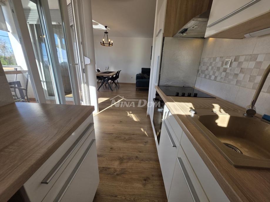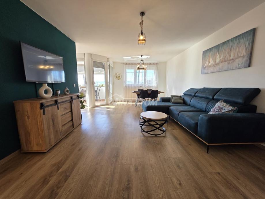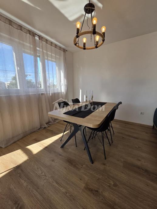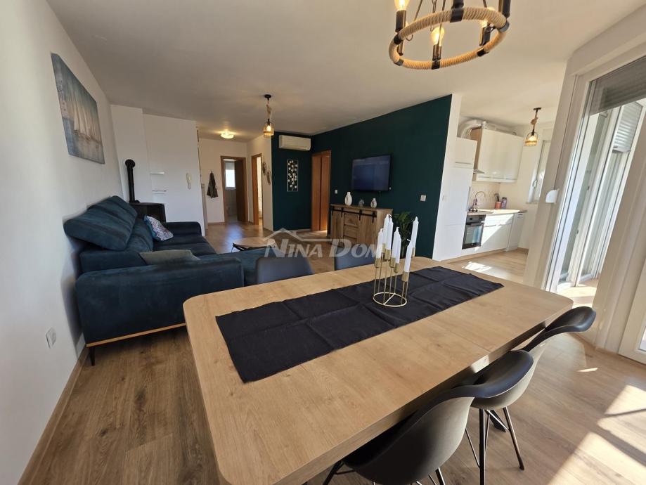 Prodaje se dvosoban stan na prvome katu manje stambene zgrade.Sastoji se od prostranog dnevnog boravka sa kuhinjom i blagovaonom,lođe,kupatila,te dviju spavaćih soba.Stanu još pripada i podrumska ostava,velićine 8,48 m2.Stan se prodaje u odnosu na slike sa oglasa djelomično namješten.Grijanje je izvedeno uspomoću peći na pelete(kruta goriva),te uspomoću klima uređaja.Blizina plaže,jedriličarskog kluba Uskok,trgovina,restorana,banke,šetnica i svih ostalih sadržaja,potrebnih za lagodan život.Za sva pitanja i obilazak,stojimo na raspolaganju.