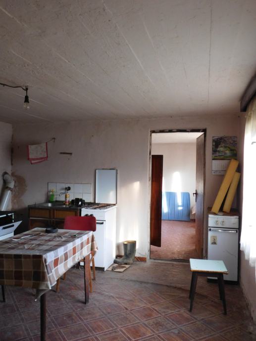 Kuća se sastoji od prizemlja i kata. U prizemlju se nalazi kuhinja, spavaća soba i wc. Na katu su dvije prostorije. Za kuću postoji građevinska dozvola, ali nije nikada unesena u ZK.