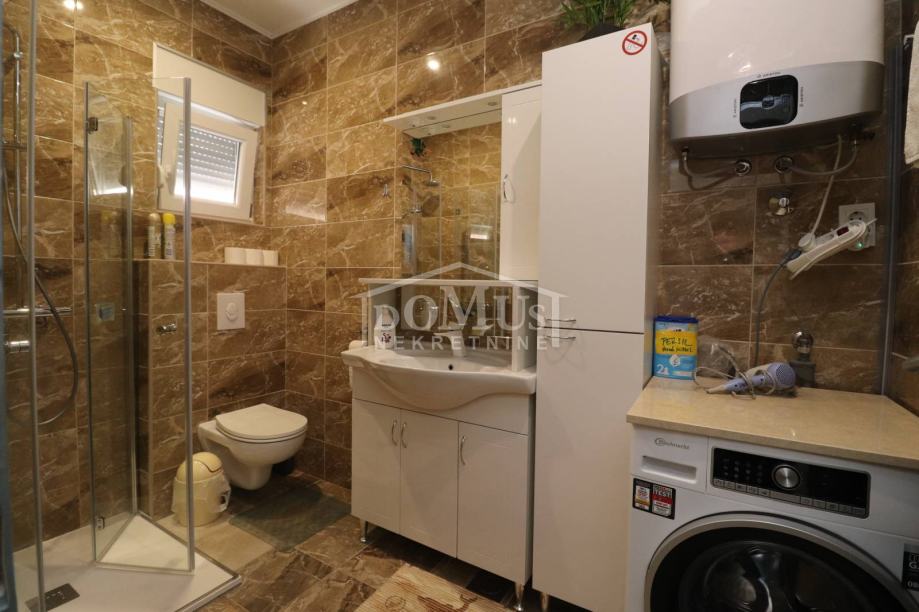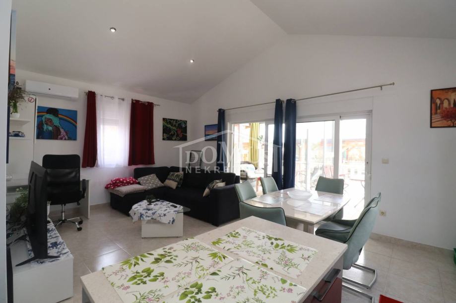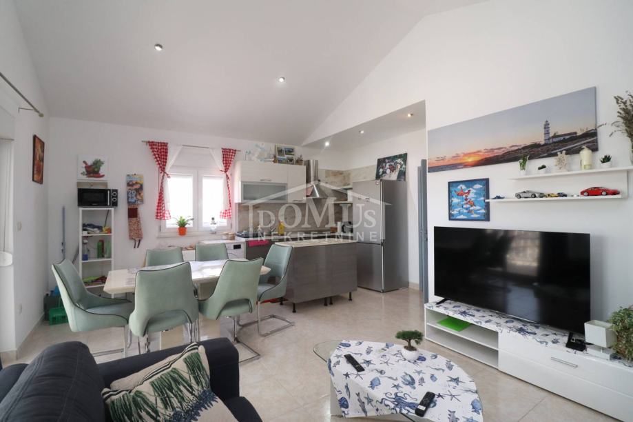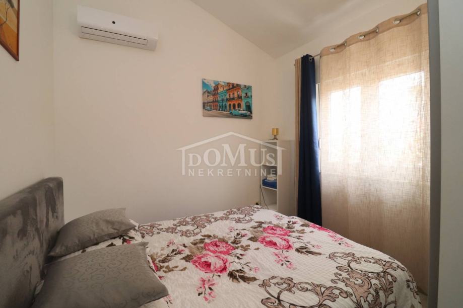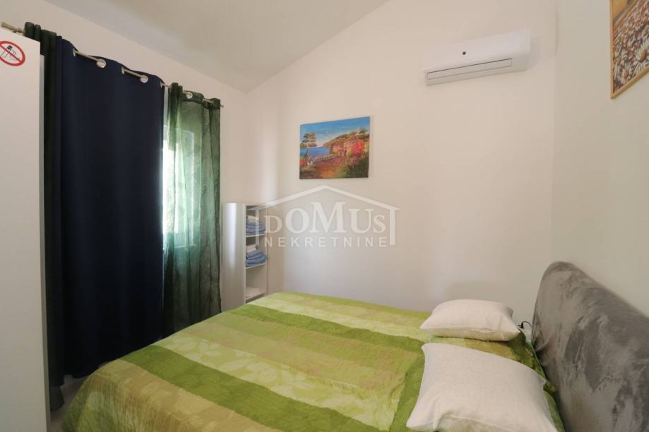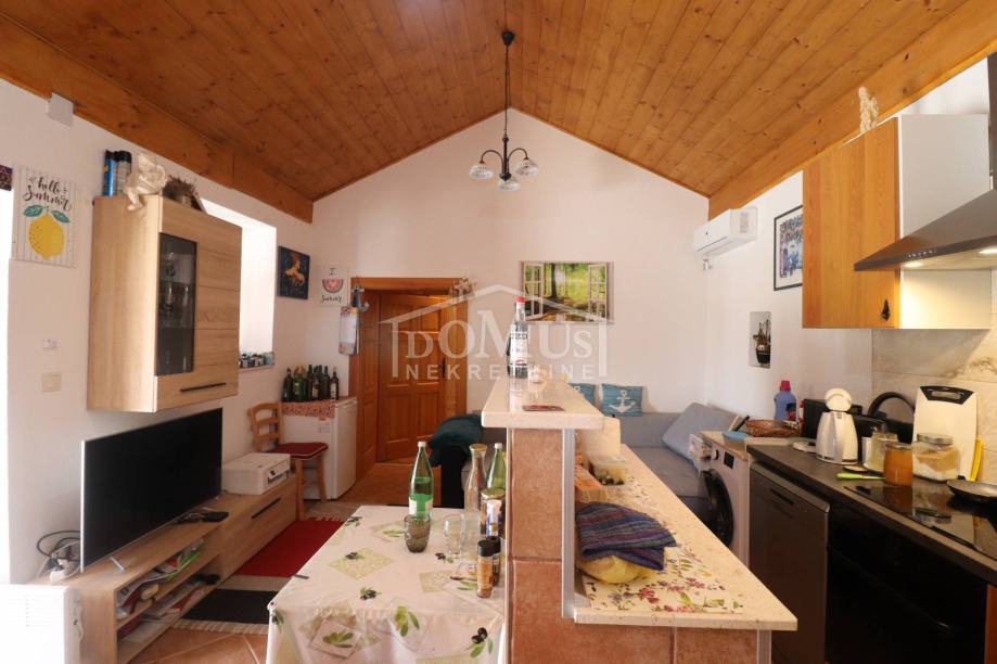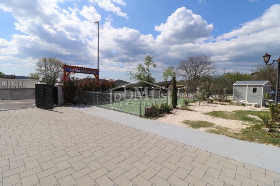 U mirnom okruženju na velikoj parceli površine 982 m2 nalaze se dva objekta kamena prizemnica površine 64 m2 te druga kuća površine 96 m2. Obje kuće su međusobno povezane zimskim vrtom površine 34 m2. Kamena kuća u naravi sastoji se od dnevnog boravka sa kuhinjom sa izlazom na natkrivenu terasu, 2 spavaće sobe i kupaonice. Druga kuća u naravi sastoji se od 2 spavaće sobe, kupaonice, i dnevnog boravka sa kuhinjom te izlaza na terasu / zimski vrt. Kuće su klimatizirane, namještene ali namještaj nije uključen u cijenu. Dvorište je ograđeno, nekretnina je prilagođena osobama sa invaliditetom, ima postavljen video nadzor. Sastavni dio ove prekrasne nekretnine također čine bazen 25 m2, tenisko igralište, sunčalište, parking sa nadstrešnicom za više auta, vrtna kućica. Okućnica je lijepo uređena sa mediteranskim biljem, iza kuće se nalazi vrtna kućica te natkriveni parking. Udaljenost do plaže u Pirovcu je 7 km.