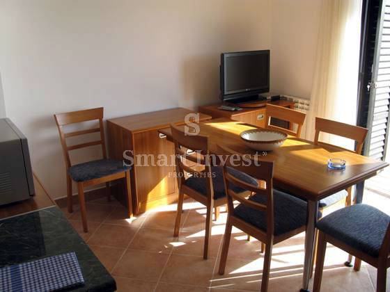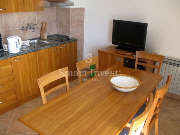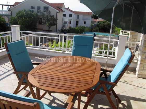 U prizemlju je komforan stan sa kuhinjom, blagovaonicom, dnevnim boravkom, dvije spavaće sobe sa kupaonicama i velikom vanjskom terasom.