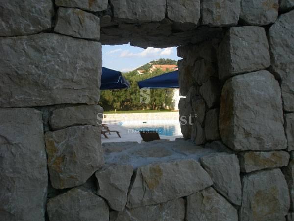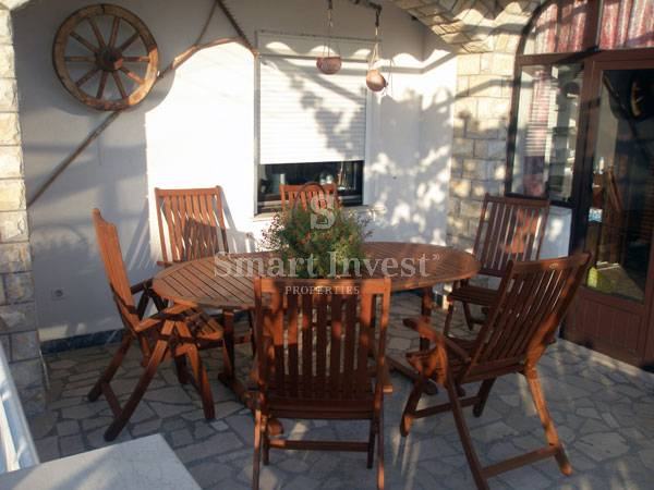 Kuća ima veliku okućnicu na kojoj se nalazi bazen veličine 12x6 m2 koji se automatski pročišćava sustavom elektrolize.