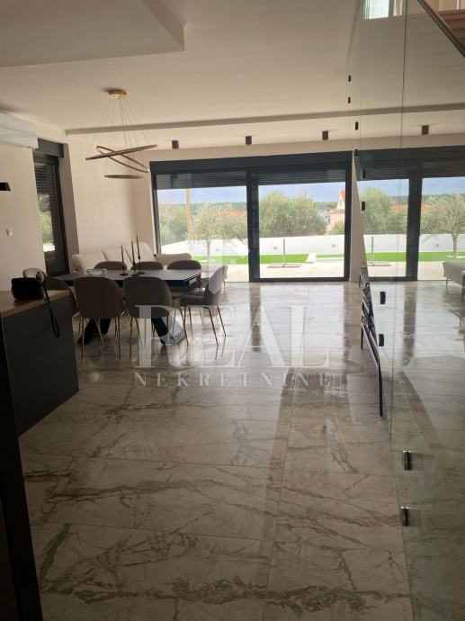 Vila je kvalitetno građena i opremljena je podnim grijanjem i hlađenjem, Alu-stolarijom sa roletama na struju, termo fasadom i dr.