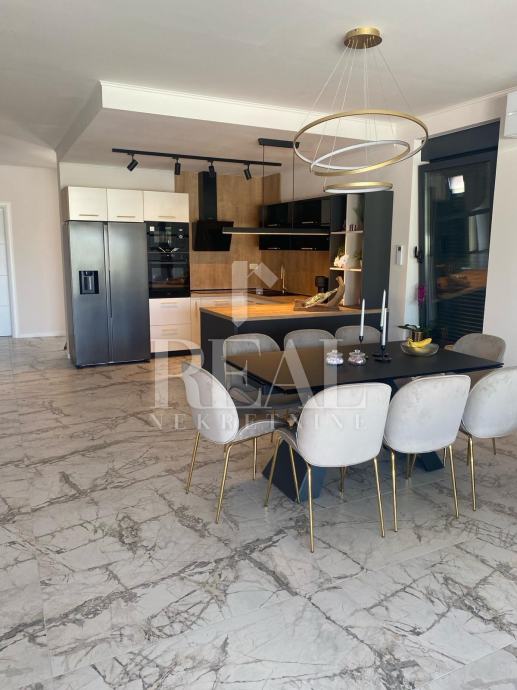 RAB-BANJOL, PREKRASNA KATNICA OD 225 m2 NETO POVRŠINE I PROSTRANOM OKUĆNICOM, GARAŽA I GRIJANI BAZEN!