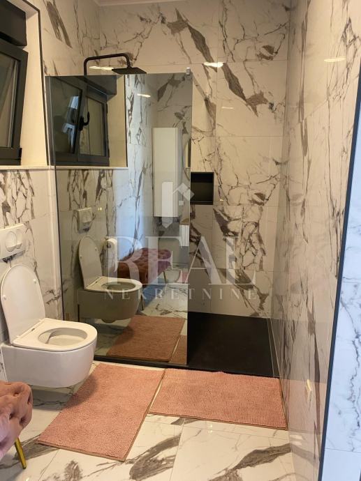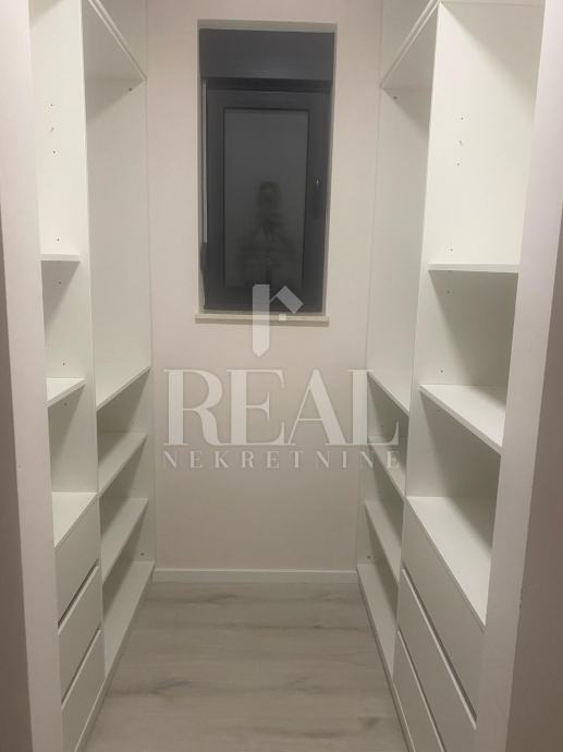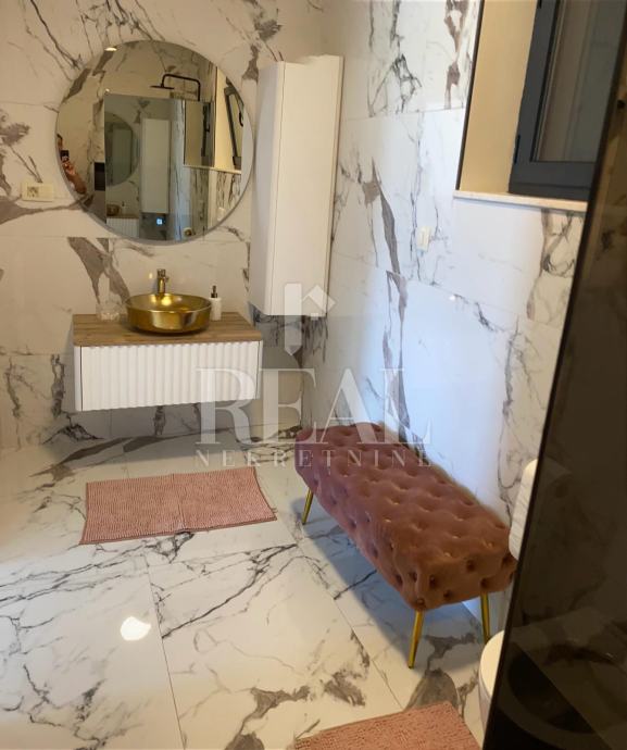 Stepeništem se dolazi na kat gdje se nalaze dvije prostrane spavaće sobe odvojene predsobljem sa vlastitim kupaonicama i izlazom na terasu koja je dijelom natkrivena i sa koje se pruža prekrasan pogled na more.