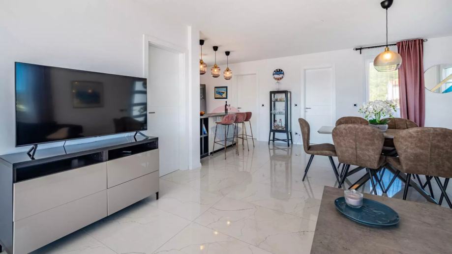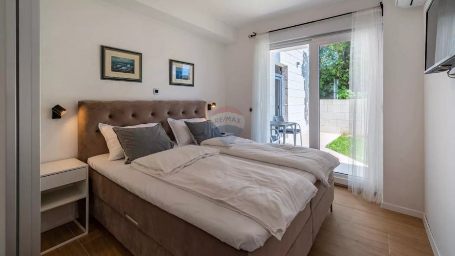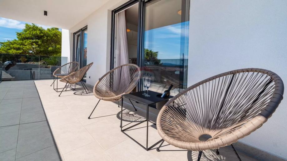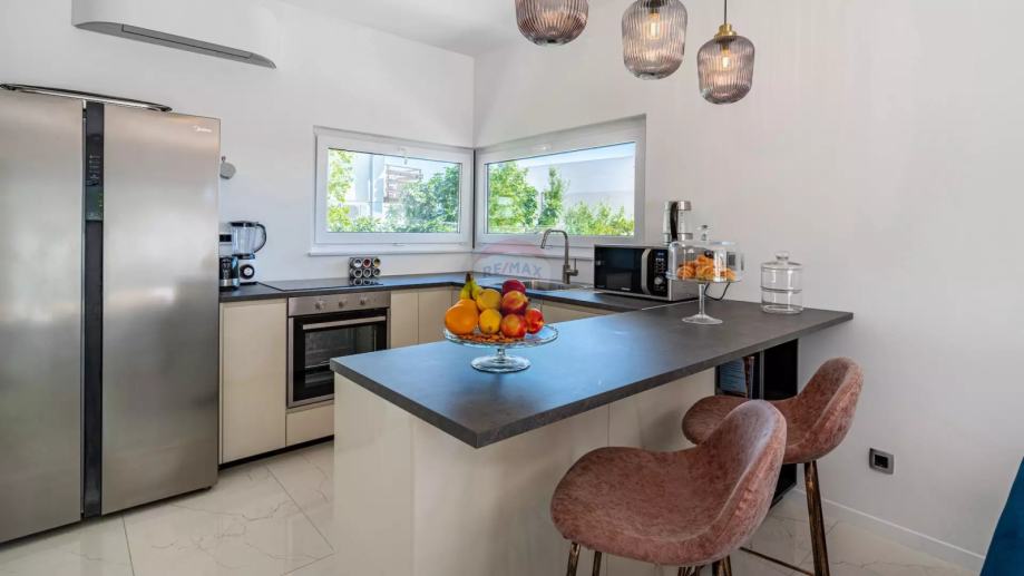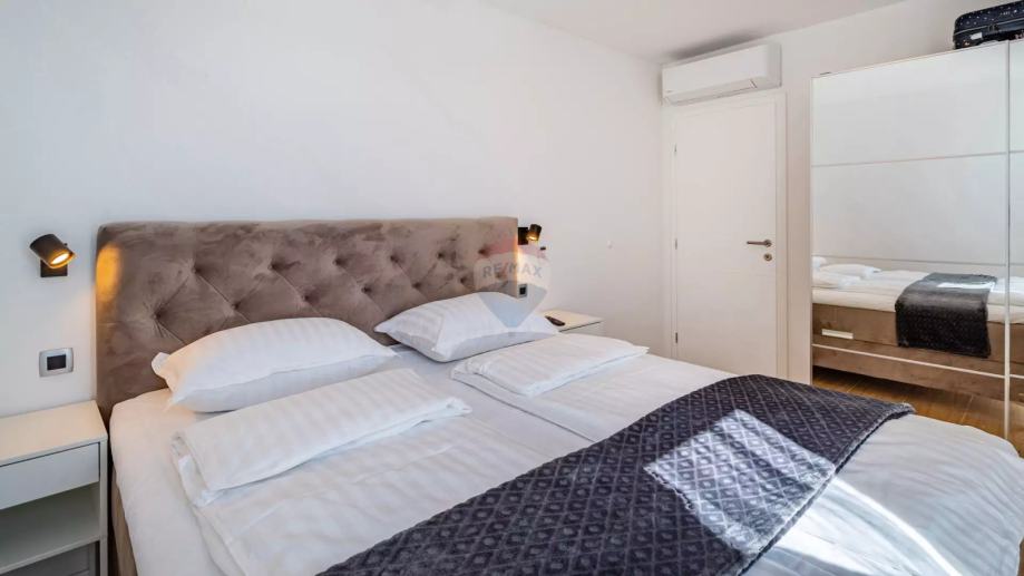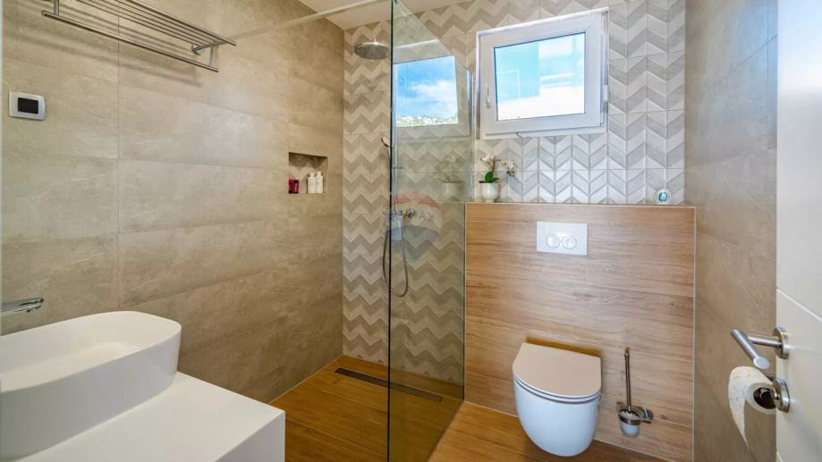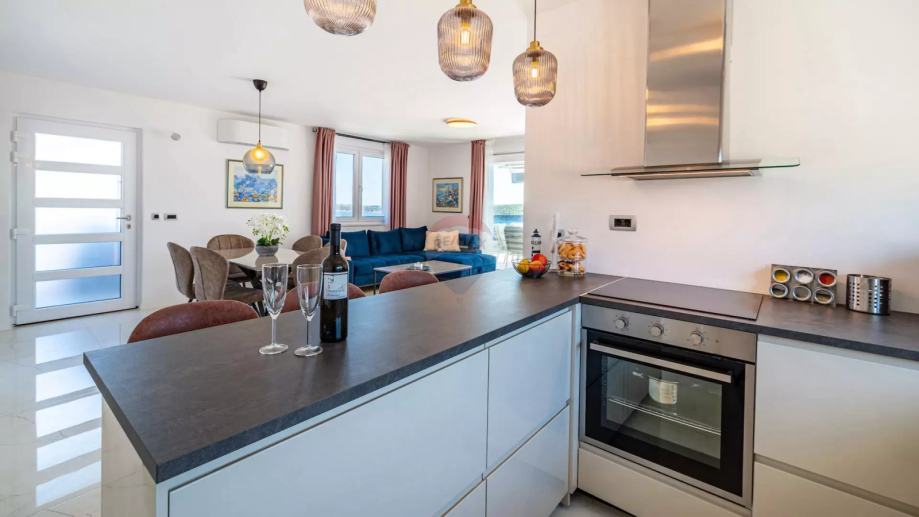 Prizemlje i kat čine jednu cijelinu, zatim se dolazi do drugog kata gdje je smješten Penthaus sa svojim posebnim ulazom te čini odvojen dio koji se prostire na 120 m2 i sastoji se od dvije spavaće sobe sa kupaonama, open space kuhinja sa blagovaonom i dnevnim boravkom iz kojeg se izlazi na prostranu terasu s jacuzzijem, odakle se pruža spektaluran pogled na more.