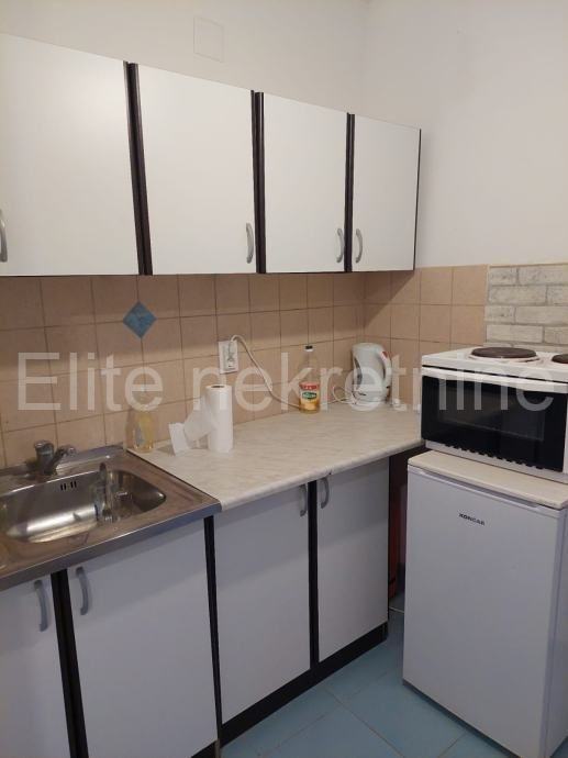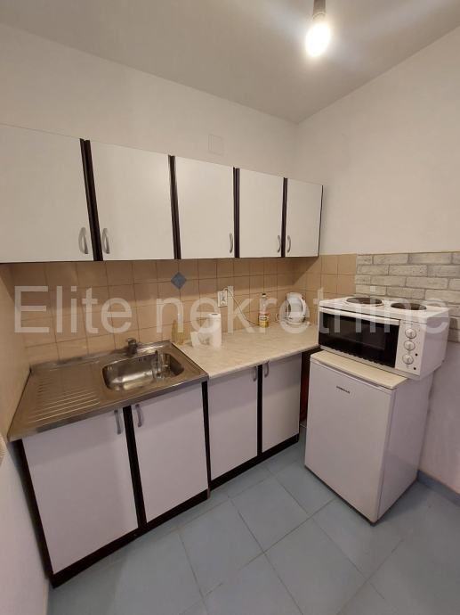 Garsonjera je osunčana, na predivnom mirnom mjestu, okrožena zelenilom. Svega 800m od bolnice i 2 kilometara od mora.