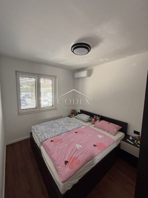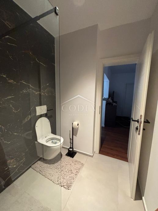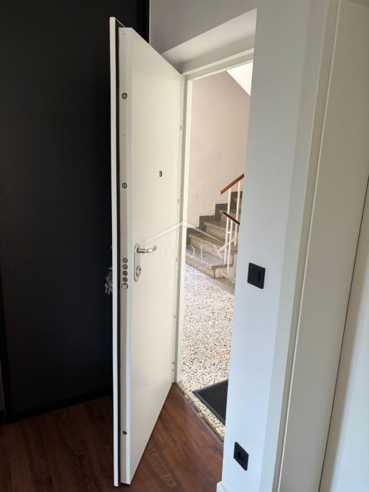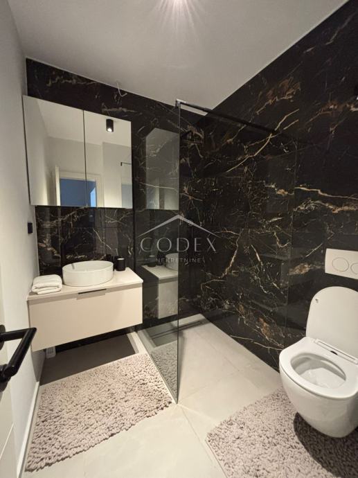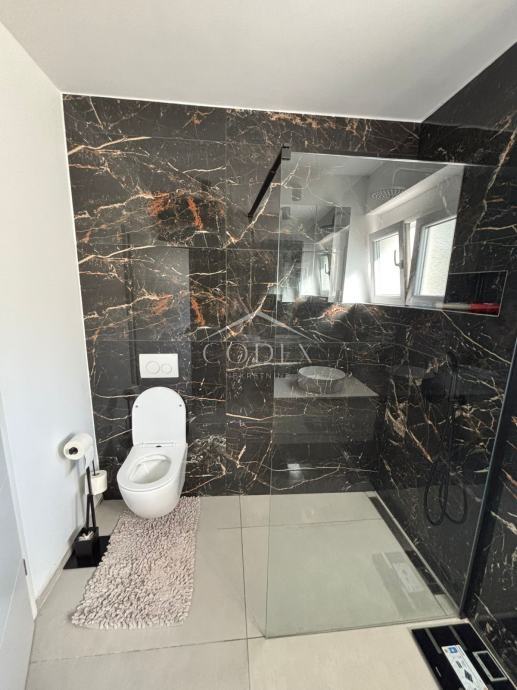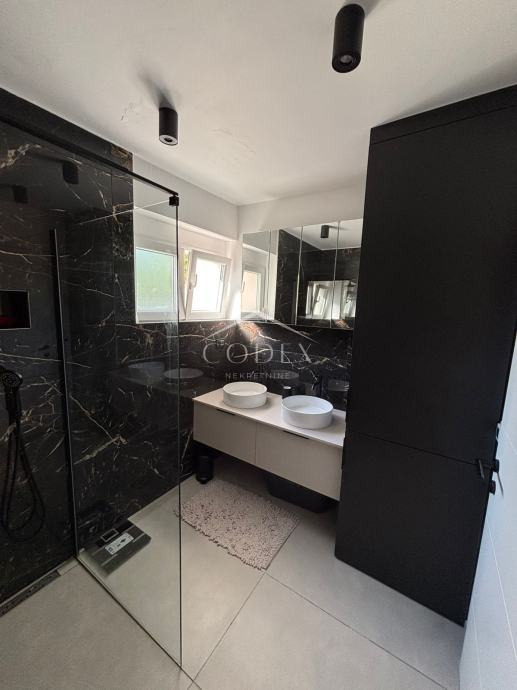 Stan se odlikuje vrhunskom kvalitetom gradnje i opreme, s očekivanim energetskim razredom A, PVC vanjskom stolarijom renomiranog proizvođača, termo fasadom, protuprovalnim i protupožarnim vratima te klimatizacijom u svim prostorijama. Podovi su obloženi višeslojnim vinilom u sobama i dnevnom boravku, dok su kupaonice opremljene keramičkim pločicama prve klase. Grijanje je omogućeno putem podnog sustava, klima uređaja te peći na drva ili pelete, a visina stropova od 270 cm dodatno doprinosi osjećaju prozračnosti i ugode.