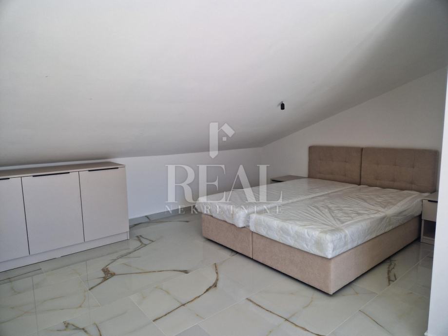 Unutarnjim stepenicama se ide u potkrovlje gdje se nalaze spavaća soba, kupaonica i terasa sa koje se pruža prekrasan pogled.