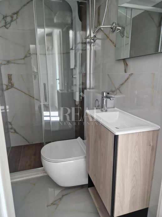 Od opreme ističemo termo fasadu, kvalitetnu vanjsku stolariju sa balkonskim kliznim stijenama, klimu u dnevnom dijelu, protuprovalna vrata i dr.