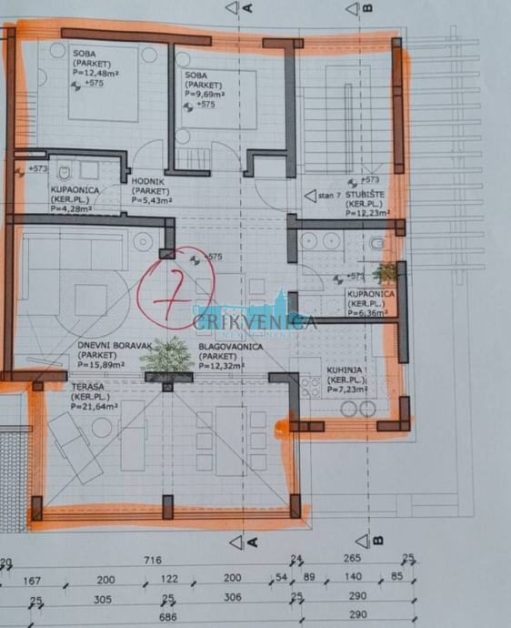 Veličina stana je 88,27 m2, dva parkirna mjesta, a cijena je 283.900,00 €. PRODANO