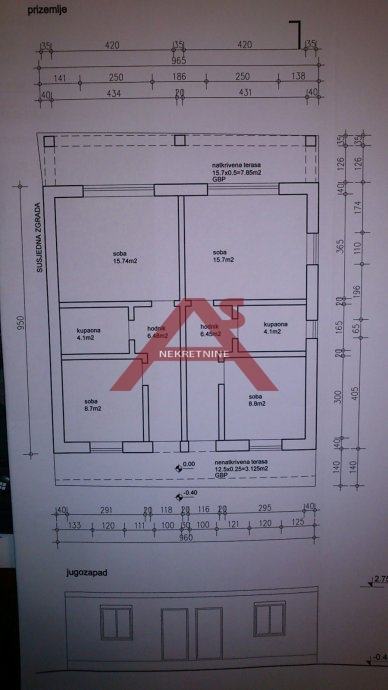 u naravi dva odvojena apartmana po 50 m2. Velika okućnica, otvoren panoramski