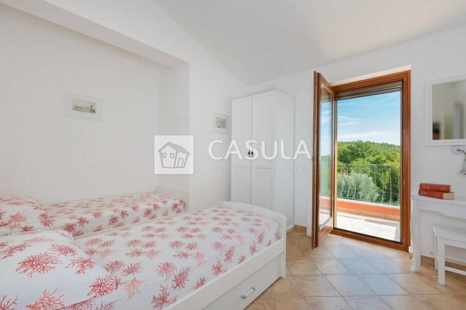Vila je smještene na mirnim brežuljcima Istre u blizini mora. Mjesto je idealno za one koji vole prirodu i tišinu.Područje je također idealno za planinarenje i biciklizam, a obala je izvrsna za one koji se žele baviti vodenim sportovima ili se samo opustiti i ležati na plaži.Klima je suha i zdrava, budući da su vile smještene 300 metara nadmorske visine; noću je svježije unatoč vrućinama tijekom ljetnih dana.