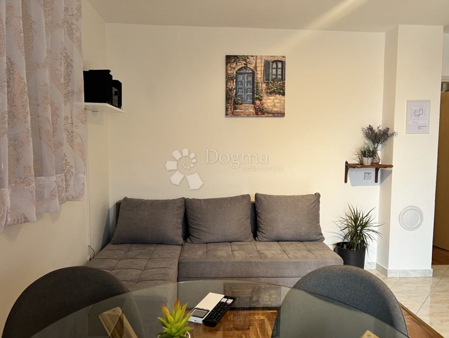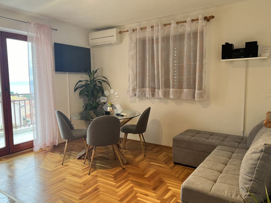 Prodaje se kompletno namješten stan s prekrasnim pogledom na more. Stan se nalazi na prvom katu stambene zgrade, ukupne površine 43,67 m².