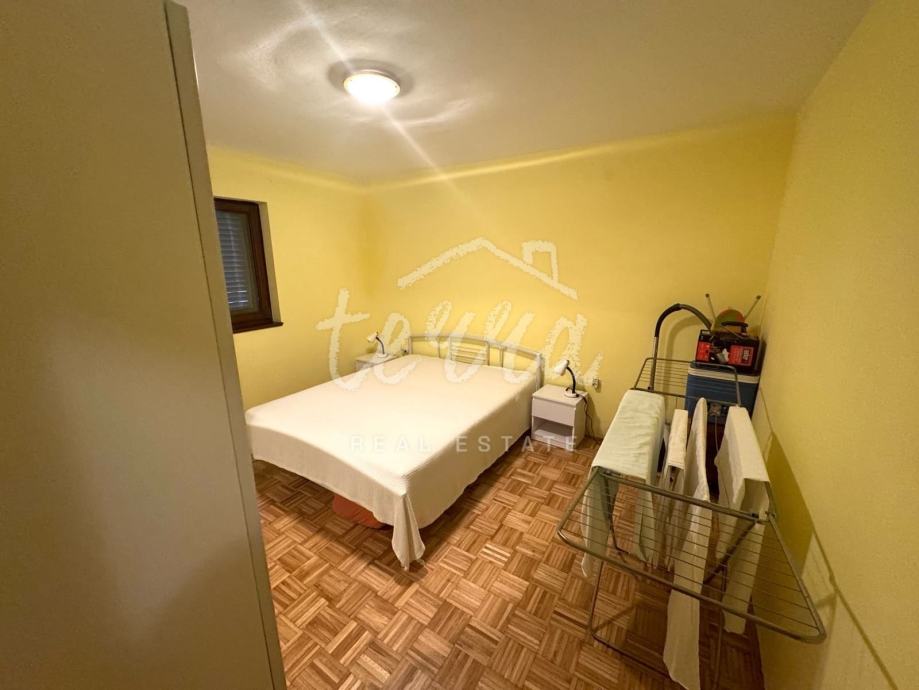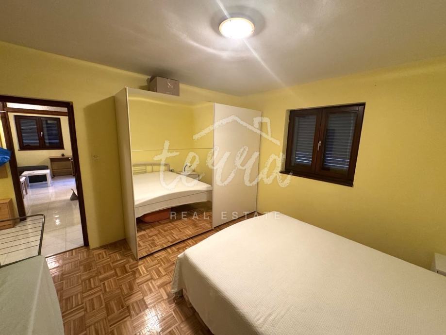 Sastoji se od jedne spavaće sobe, kuhinje sa blagovaonom i dnevnim boravkom, kupaone, a dodatnu vrijednost daju prostrana vanjska terasa, dio okućnice zgrade koja je na korištenje, te drvarnica od četiri četvornih metara.