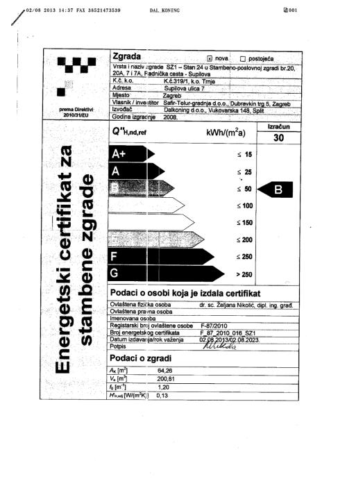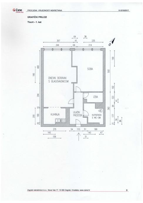 Ukupna korisna površina stana, uključujući garažno parkirno mjesto i ostava (obračunato s koeficijentom 0,5), iznosi 72,2 m². Cijena samog stana od 62,73 m2 je 325.000 EUR, a s garažno-parkirnim mjestom (ukupno 18,88 m²) iznosi 360.000 EUR.